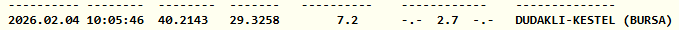 Paylaşılan verilere göre deprem saat 10.05'te 2.7 büyüklüğünde meydana geldi. Kandilli Rasathanesi, merkez üssü Kestel olan depremin derinliğini 7,2 kilometre olarak açıkladı.
