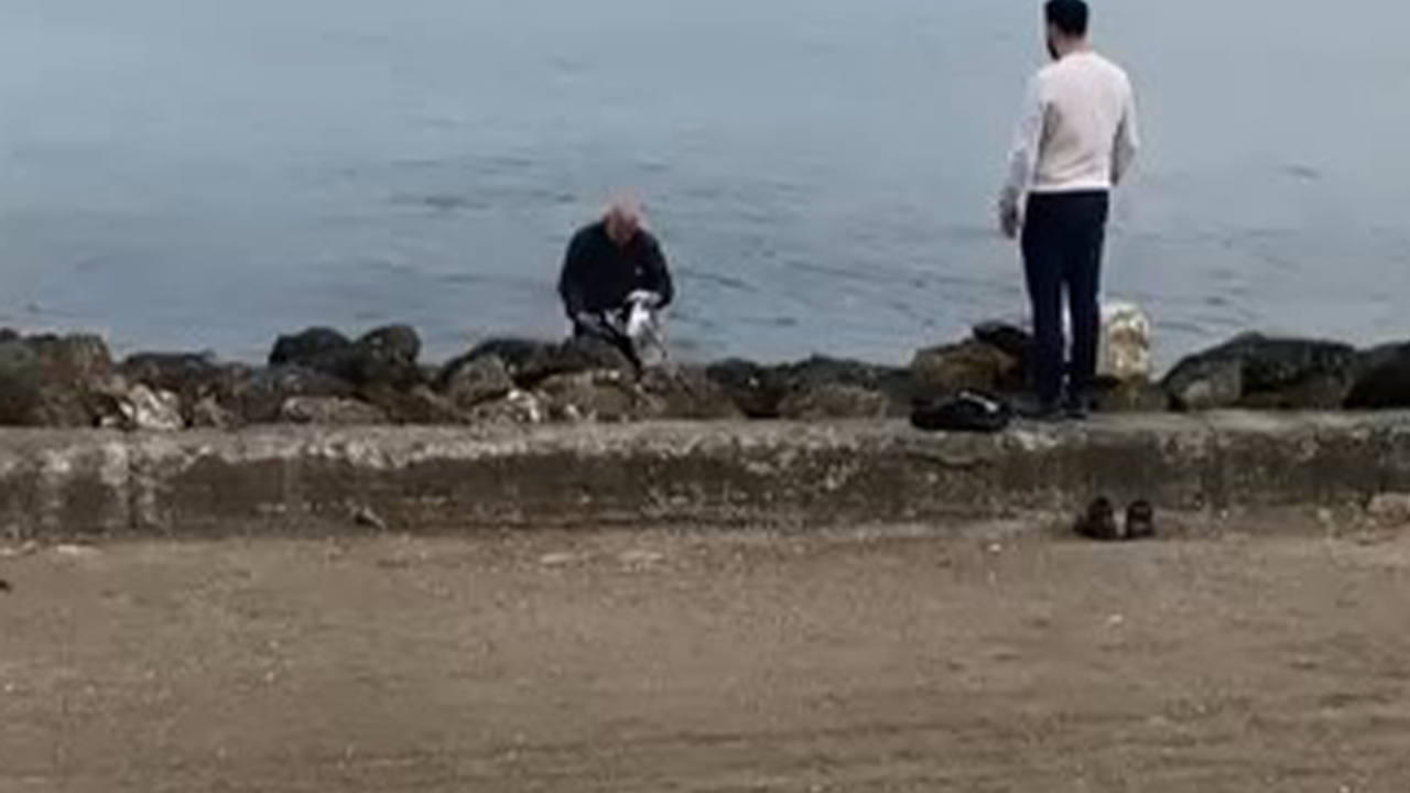 Martının su üzerinde hareketsiz şekilde çırpınmaya çalıştığını gören vatandaş, hiç tereddüt etmeden kıyafetleriyle birlikte denize girerek martıyı güvenli bir alana çıkardı. Ardından martının üzerine dolanan misina ve kancaları dikkatlice çıkararak yaralanmasını engelledi.