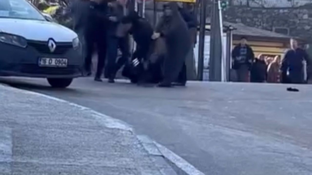 Cadde ortasında birbirine saldıran iki sürücüyü çevredeki vatandaşlar güçlükle ayırdı. Yaşanan arbede sırasında tarafların birbirine tekme ve yumruklarla saldırdığı anlar cep telefonu kamerasına yansıdı.