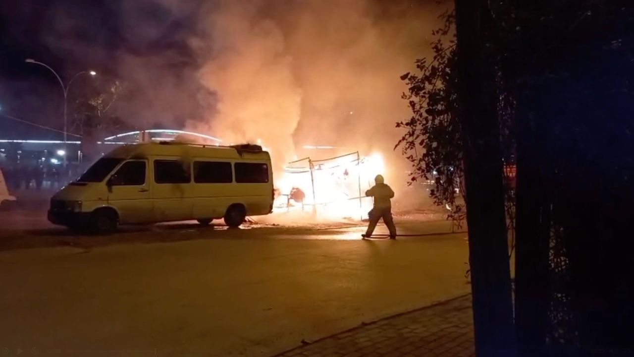 İhbar üzerine olay yerine itfaiye, polis ve sağlık ekipleri sevk edildi. Yangın, itfaiye ekiplerinin yaklaşık yarım saat süren müdahalesinin ardından kontrol altına alınarak söndürüldü. Yangında minibüs yanarak kullanılamaz hale gelirken, barakada da büyük çapta hasar oluştu.