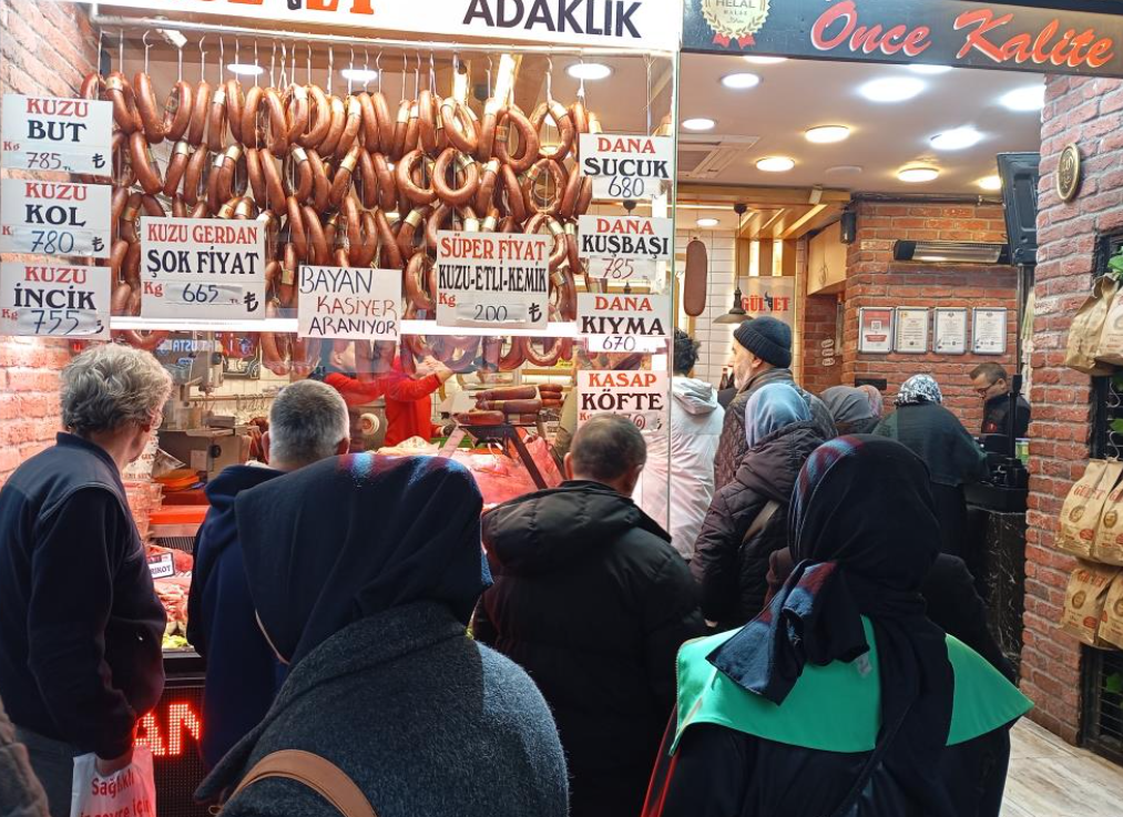 Öte yandan kasaplarda satılan et fiyatları da dikkat çekti. Kuzu butun kilogramı 785 lira, kuzu kol 780 lira, kuzu incik 755 lira, kuzu gerdan 665 lira ve kuzu etli kemik 200 liradan satışa sunuluyor. Dana ürünlerinde ise sucuk 680 lira, kuşbaşı 785 lira, kıyma 670 lira ve kasap köfte 670 liradan alıcı buluyor.