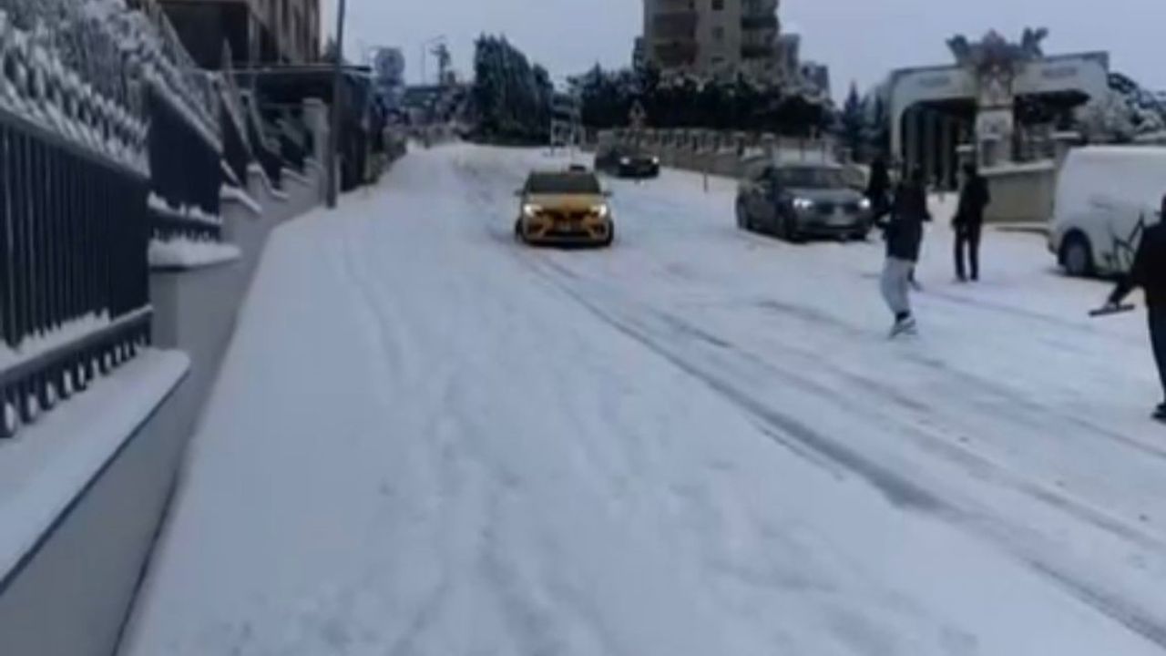 Bir araç sürücüsü ise buzlu yolda duramayarak bir araca ve sitenin girişine çarptı. O anlar diğer sürücüler tarafından kaydedildi.