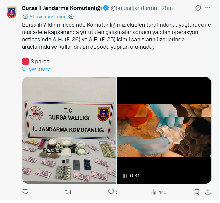Edinilen bilgiye göre, Bursa İl Jandarma Komutanlığı ekipleri tarafından gerçekleştirilen operasyonda A.H. (36) ve A.E. (35) isimli şahıslar gözaltına alındı.