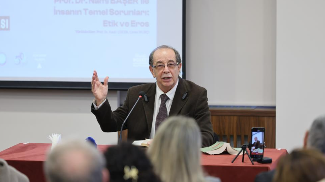 Kültür, Sanat ve Sosyal İşler Dairesi Başkanlığı tarafından Tayyare Kültür Merkezi’nde gerçekleştirilen programa, felsefe meraklıları yoğun ilgi gösterdi. İnsan ve Felsefe’ temalı söyleşinin yürütücülüğünü Prof. Dr. Kadir Çüçen ve Ceren İplikçi üstlendi. Programa konuşmacı olarak katılan Prof. Dr. Nami Başer, ‘İnsanın Temel Sorunları: Etik ve Eros’ başlığında varlığın temel taşlarını felsefi bir bakış açısıyla ele aldı. Etkinliğin sonunda Kültür, Sanat ve Sosyal İşler Dairesi Başkanı Şafak Baba Pala tarafından Prof. Dr. Nami Başer’e hediye verildi.