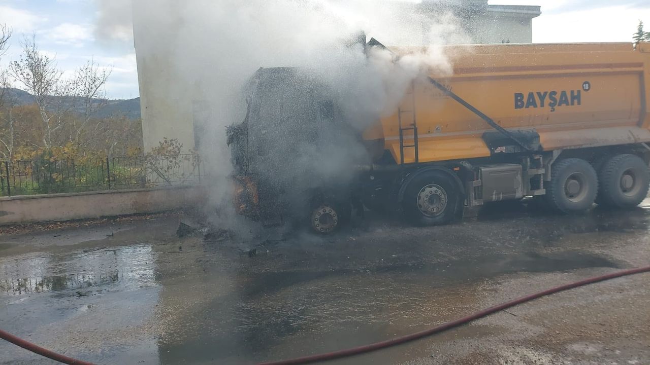 Olay, Bursa'nın Mustafakemalpaşa ilçesi Devecikonak Mahallesi’nde meydana geldi. Edinilen bilgiye göre, Taş Mektep yakınlarında hafriyat kamyonundan dumanlar çıktığı fark eden sürücü, araçtan inip canını kurtardı. Biranda alev topuna dönen kamyon, Orman İşletme Müdürlüğü’ne bağlı ekipler tarafından söndürüldü.