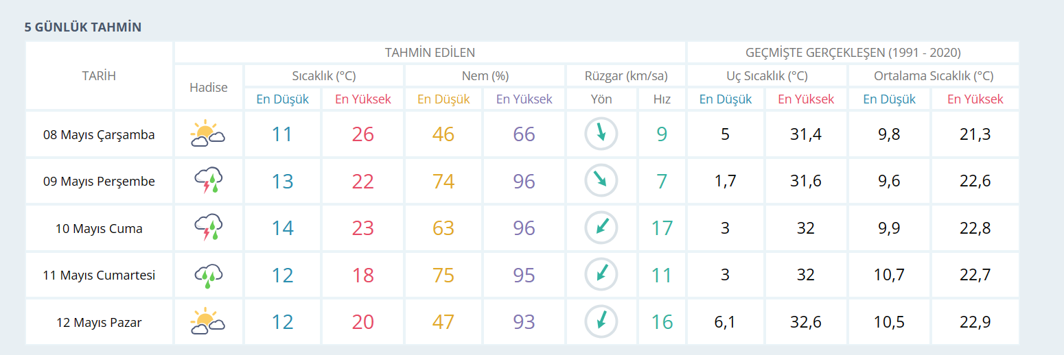 İNEGÖL İÇİN 5 GÜNLÜK HAVA DURUMU TAHMİNİ
