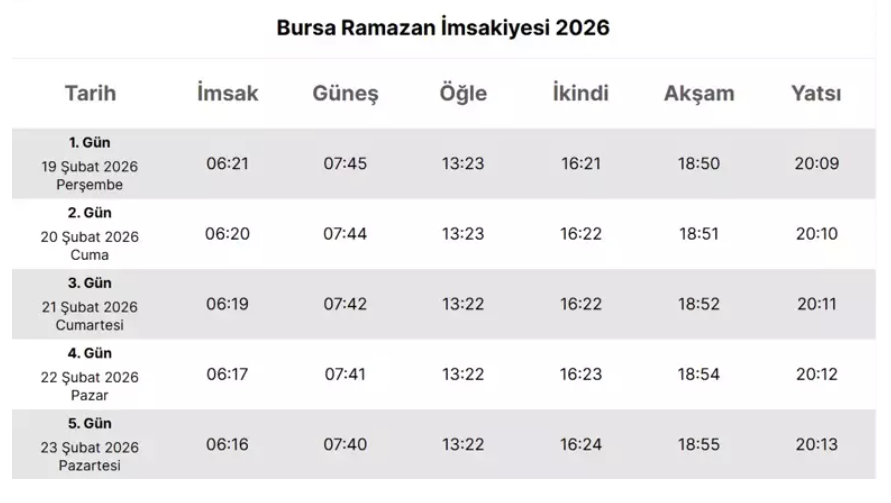 BURSA 2026 SAHUR VAKTİ VE İFTAR SAATİ