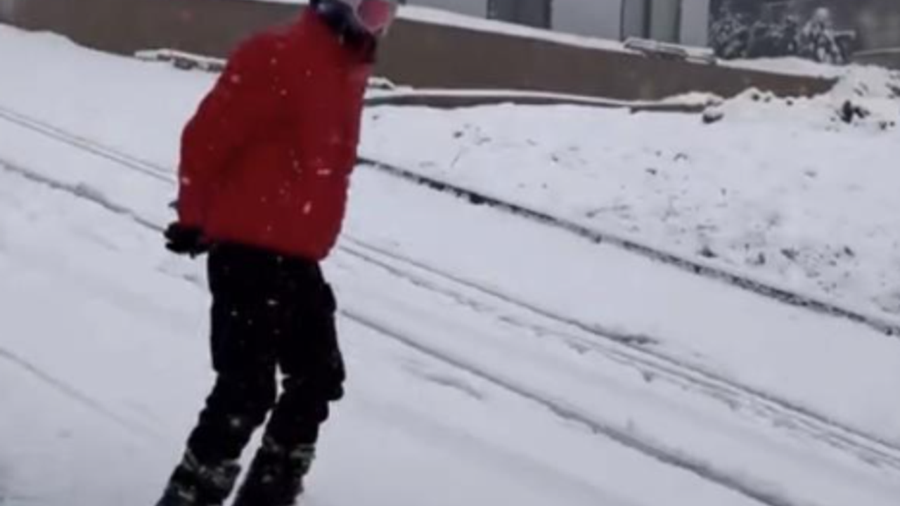 Merkez Yıldırım ilçesi Piremir Mahallesi'nde sabah saatlerinde etkili olan kar yağışı sonrası beyaza bürünen yollarda kayak takımıyla kayan vatandaş, çevredeki vatandaşların ilgisini çekti. O anlar cep telefonu kamerasıyla kaydedildi.