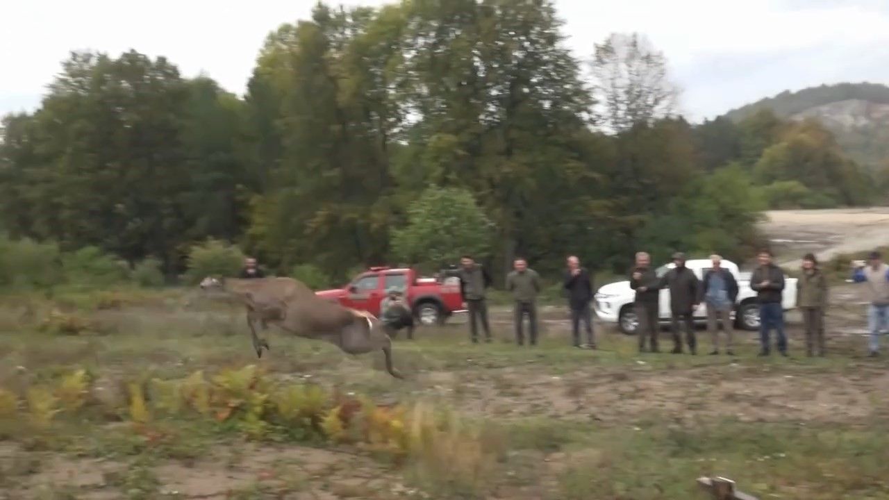Uludağ'ın eteklerinde doğal ortamına kavuşan geyikler ise, hoplaya zıplaya ormanın içerisinde kayboldu.
