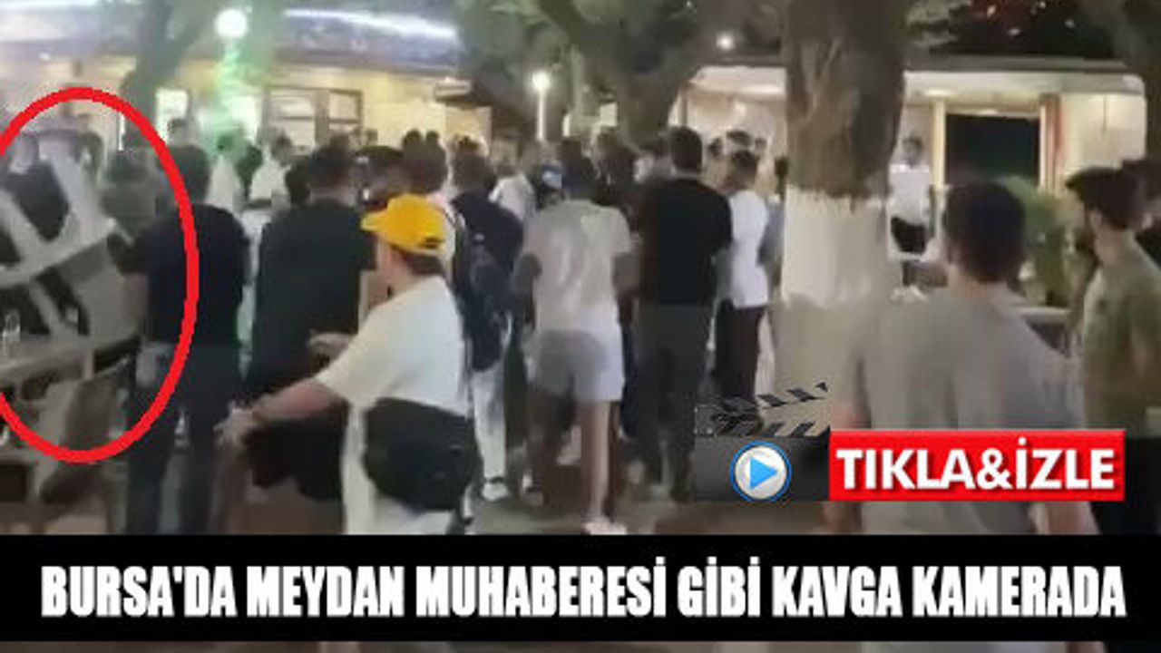 Bursa’da iki grup arasında çıkan ve tekme, yumruk ile sandalyelerin havada uçuştuğu meydan muharebesi gibi kavgada kameraya yansıdı.
