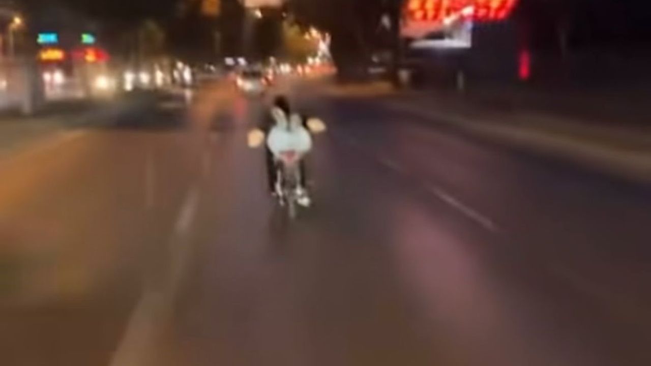 Henüz kimliği belirlenemeyen motosiklet sürücüsü, hem trafiği hem de kendi hayatını hiçe sayarak motosikletin üzerine uzanıp yolculuğuna devam etti.