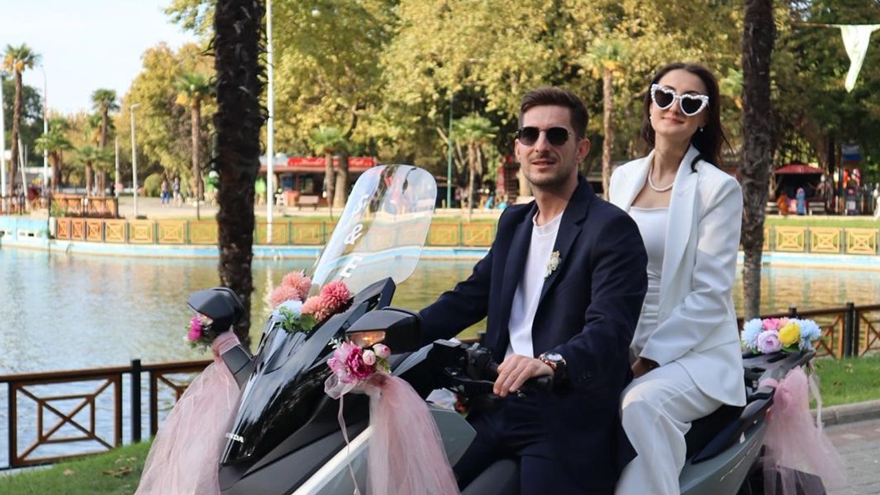 Nikâhın ardından motosikletlerini çiçek ve tüllerle süsleyen çift, düğün konvoyuna ilginç bir renk kattı. Gelinlik yerine beyaz takım tercih eden Şule Albayrak Çağın ve damat Emre Çağın, süslenmiş motosikletleriyle şehir turuna çıktı. Renkli görüntülere sahne olan anlarda çevredeki vatandaşlar çifti alkışlayarak mutluluklarına ortak oldu.