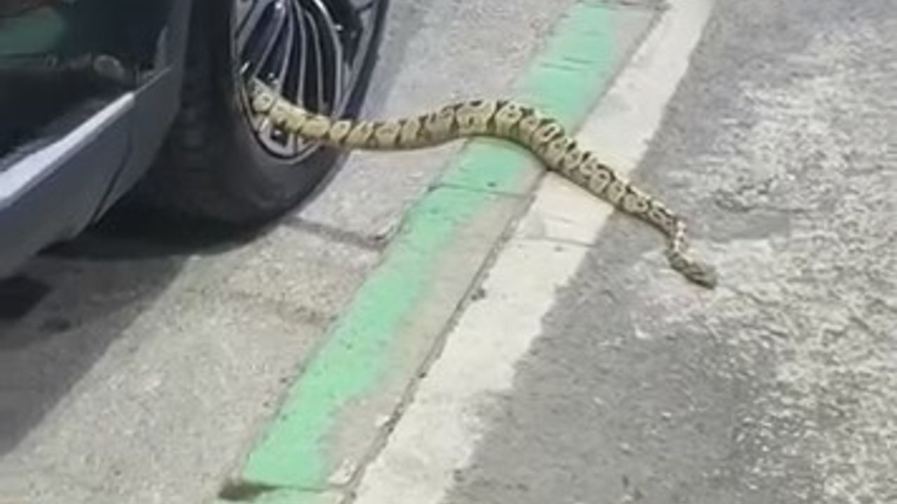 Kısa süre içinde olay yerine gelen vatandaşlar, aracın jantından sarkan sarı ve siyah desenli yaklaşık 1 metre uzunluğundaki bir yılanla karşılaştı. Bazı mahalle sakinleri durumu cep telefonlarıyla kayda alırken, bazıları ise tedirgin oldu. Vatandaşlar yılanı nasıl alacağını düşünürken, kendiliğinden janttan çıkan yılan araçtan uzaklaştı.