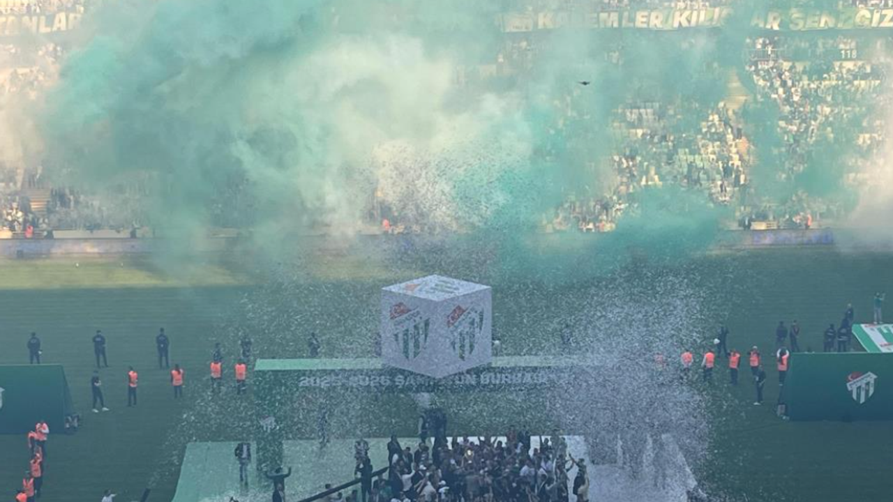 TFF 2. Lig Kırmızı Grup'ta 2025-2026 sezonunu şampiyon tamamlayan Bursaspor için Atatürk Matlı Stadyumu'nda 3 büyükleri aratmayan bir kutlama programı gerçekleştirildi.