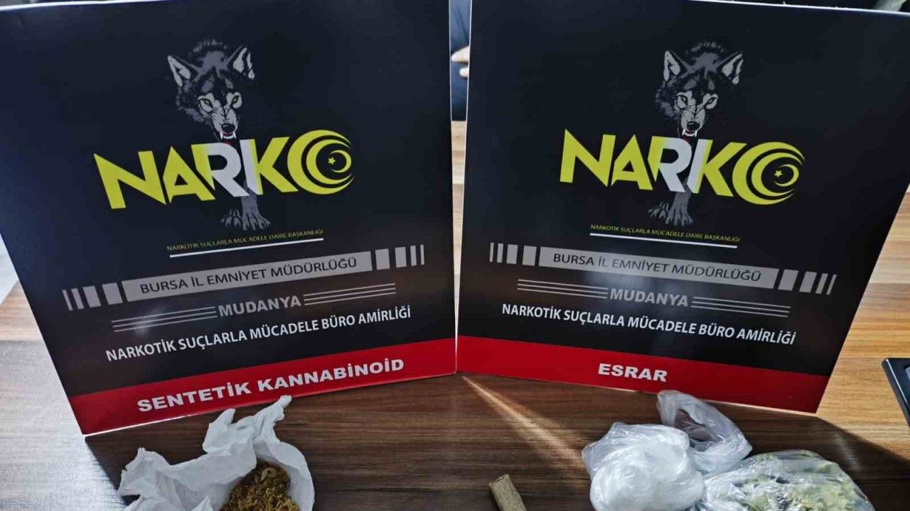 Olay, Mudanya ilçesi Ömerbey Mahallesi’nde meydana geldi. Edinilen bilgiye göre, Mudanya Narkotik Suçlarla Mücadele Büro Amirliği ekipleri gece saatlerinde şüphelendikleri bir aracı durdurdu. Araçta bulunan D.Ç. ile M.S. şahısların kaba üst ve arabada yapılan aramalarda 37.1 gram esrar maddesi ile 2.90 gram gelen sentetik kannabinoid ele geçirildi. Şüpheli şahısların emniyetteki işlemleri sürüyor.