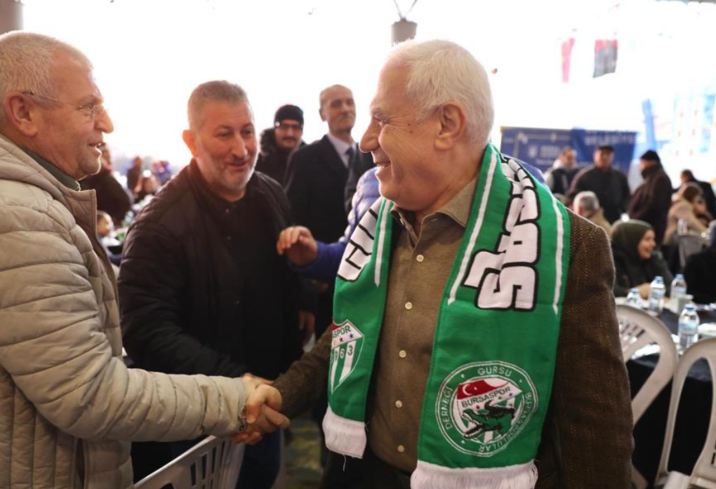 Gürsu Kapalı Pazar Alanı’nda büyük bir coşkuyla karşılanan Bursa Büyükşehir Belediye Başkanı Mustafa Bozbey, masaları tek tek dolaşarak vatandaşlarla sohbet etti. Programa, CHP Bursa İl Başkanı Nihat Yeşiltaş, Gürsu Kaymakamı Murat Kütük, siyasi parti temsilcileri, meclis üyeleri, muhtarlar, sivil toplum kuruluşlarının temsilcileri, Büyükşehir Belediyesi yöneticileri ve çok sayıda Gürsulu katıldı. Aynı sofrada buluşan vatandaşlar, Ramazan’ın bereketini ve huzurunu birlikte yaşadı. Akşam ezanının okunmasıyla birlikte vatandaşlar hep birlikte oruçlarını açtı.