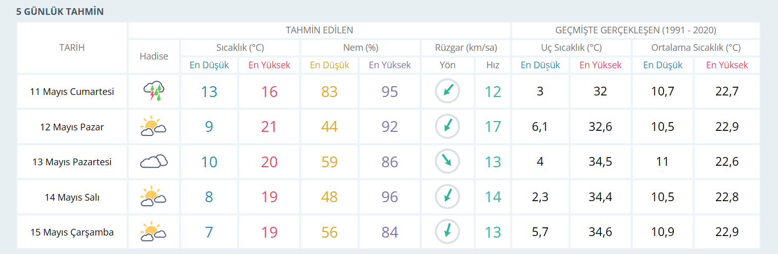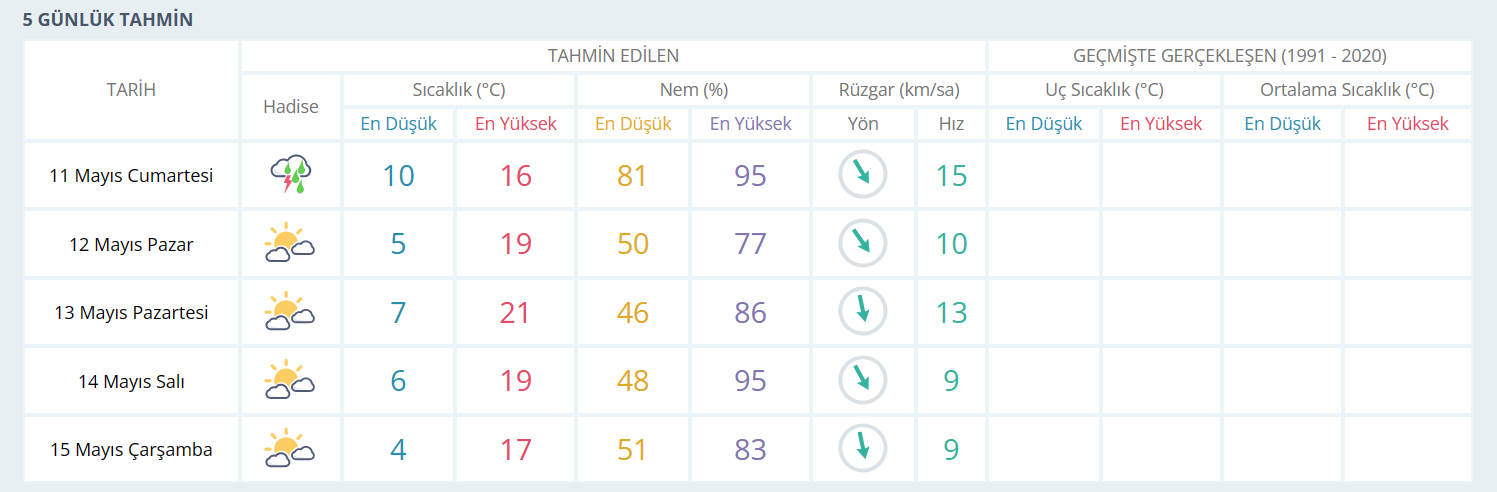 İNEGÖL İÇİN 5 GÜNLÜK HAVA DURUMU TAHMİNİ