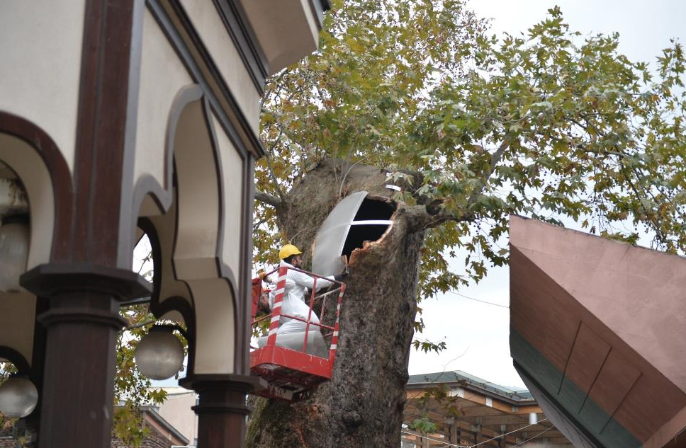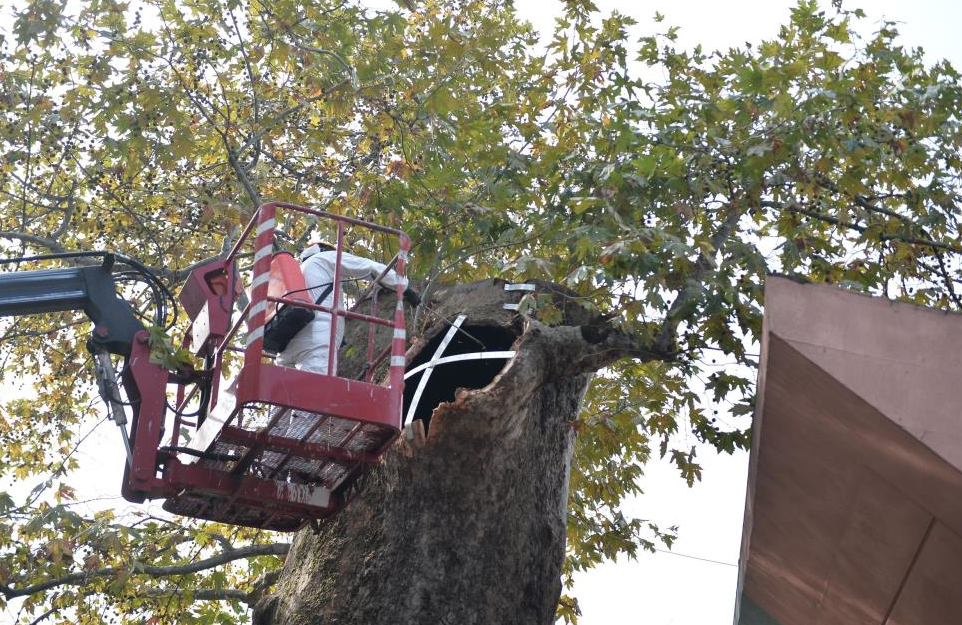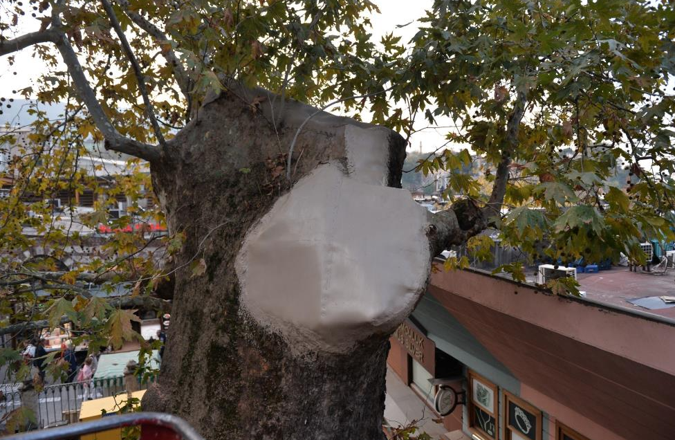 Park ve Bahçeler Dairesi Başkanlığı ekipleri tarafından yapılan incelemede, anıt ağacın açık yarasında çürümüş ve mantarlaşmış bölümler tespit edildi. Hızlı bir şekilde bakım ve restorasyon işlemlerine başlayan ekipler, özel ilaçlarla ‘çürümeye yol açan’ bakterileri temizledi. Ağacın iskeletine teller aracılığıyla destek uygulanırken, son aşamada özel yalıtım malzemesi kullanılarak ağacın açık yarası kapatıldı.