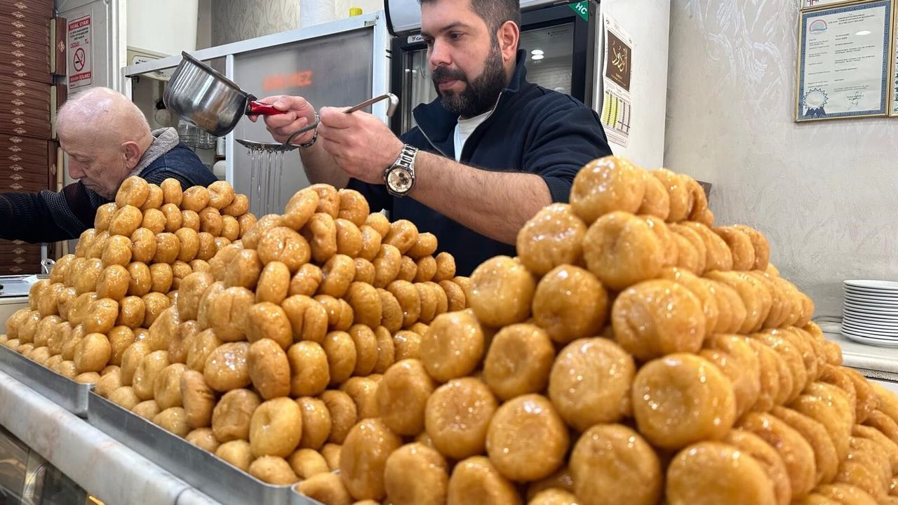 "Un, yağ ve su içeriyor ama el emeği önemli olan. Yapılışı çok zor. Elde tek tek işleniyor. 50 kilo Ramazan helvası yapana kadar 150 tepsi baklava yaparsın. Ramazan ayına özel işçi alıyoruz. Onlar tek tek işliyor. Hamur yoğruluyor. Çıkınca hamur dinleniyor. Tatlı olana kadar 3-4 kez periyotlar halinde dinlendiriliyor. Elde yuvarlanır, işlenir. Bütün aşamalarından sonra yağda kızartılıyor ve şekere batırılıyor. 15 kişi çalışıyor, sabah 08.00 gibi başlıyor, akşam 18.00'e kadar bununla ilgileniyorlar."