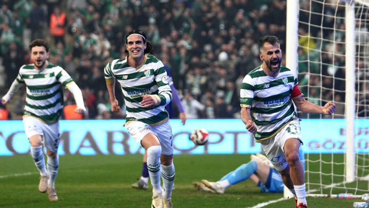 16' Bursaspor golü buldu ve öne geçti. Bu dakikada sağ kanattan korner vuruşunu paslaşarak kullanan Soner Aydoğdu, ceza sahası çaprazından uzak köşeye harika bir vuruş çıkardı. Kaleci Nurullah'ın uzanmasına rağmen top 90 tabir edilen yerden filelere buluştu.