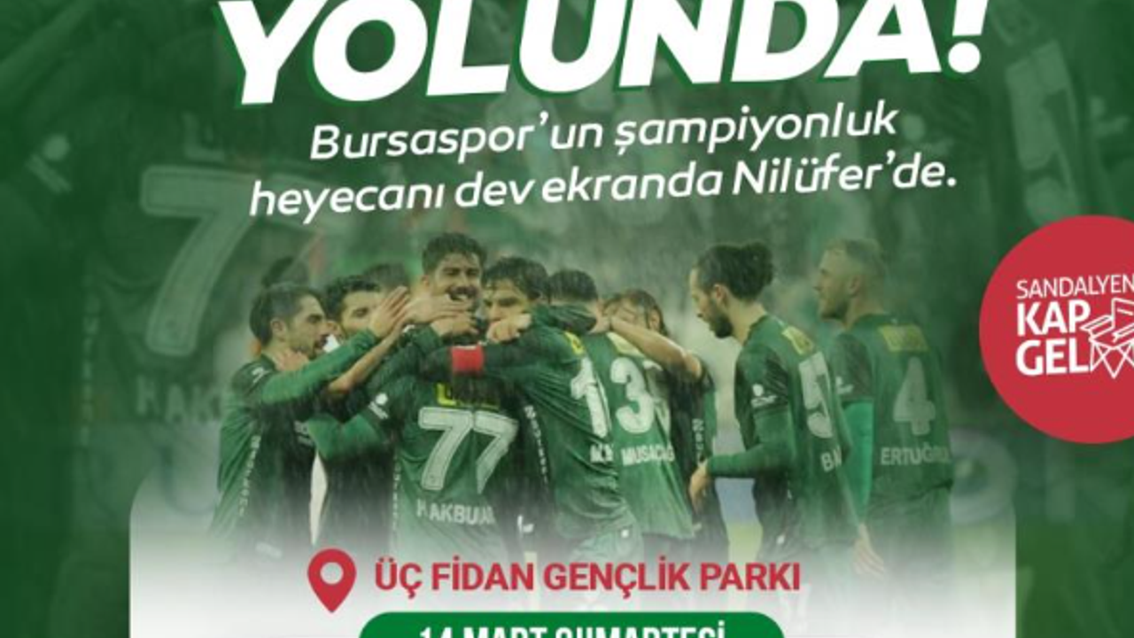 Bu heyecana taraftarları davet eden Nilüfer Belediye Başkanı Şadi Özdemir, 'Gelin, takımımızın deplasmanda vereceği bu önemli mücadeleyi Üç Fidan Gençlik Parkı'nda omuz omuza birlikte izleyelim. Şampiyonluk mücadelesinin heyecanını hep beraber yaşayalım' dedi.