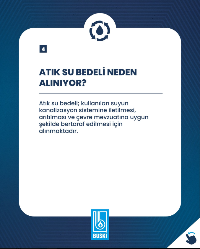 BUSKİ, kullanılan suyun kanalizasyona iletilmesi, arıtılması ve çevre mevzuatına uygun şekilde bertaraf edilmesi için atık su bedelinin tahsil edildiğini vurguladı.