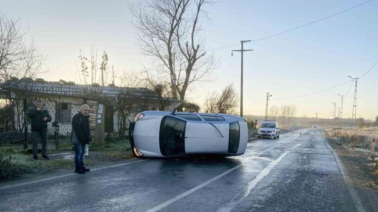 Edinilen bilgiye göre, olay, Karaağaç Mahallesi’nde sabah saat 08.30 sıralarında yaşandı. E.K. yönetimindeki içinde 3 kişinin bulunduğu 34 EU 3075 plakalı otomobil, Karaağaç Eskice Yolu’nda seyir halindeydi. Yoldaki buzlanma nedeniyle E.K. bir anda kontrolünü kaybetti. Araç aniden yan yattı. İçindeki 3 kişi kazadan yara almadan kurtulurken ihbar üzerine olay yerine polis ekipleri sevk edildi. Kazayla ilgili tutanak tutuldu.