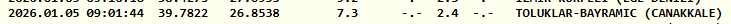 Kandilli Rasathanesi Bayramiç'te meydana gelen depremin verilerini resmi internet sitesi üzerinden duyurdu. Buna göre deprem saat 09.01'de 2.4 büyüklüğünde gerçekleşti. Depremin derinliği ise 7.3 kilometre olarak ölçüldü.