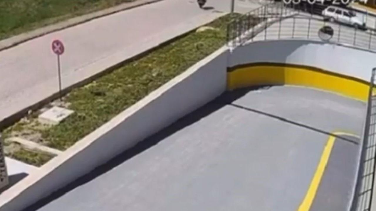 Çanakkale’nin Biga ilçesinde tek teker üzerinde seyreden motosiklet refüje çarptı. 2 kişinin yaralandığı kaza güvenlik kamerasına yansıdı.