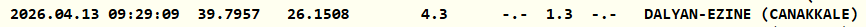 Çanakkale'nin Ezine ilçesinde saat 09.29'da meydana gelen deprem 1.3 büyüklüğünde gerçekleşti. Depremin derinliği 4.3 kilometre olarak ölçüldü.
