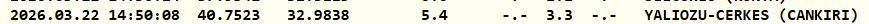 Kandilli Rasathanesi'nin resmi internet sitesi üzerinden alınan bilgilere göre deprem saat 14.50'de 3.3 büyüklüğünde gerçekleşti. Çerkez merkezli depremin yerin 5.4 kilometre derinliğinde meydana geldiği belirtildi.