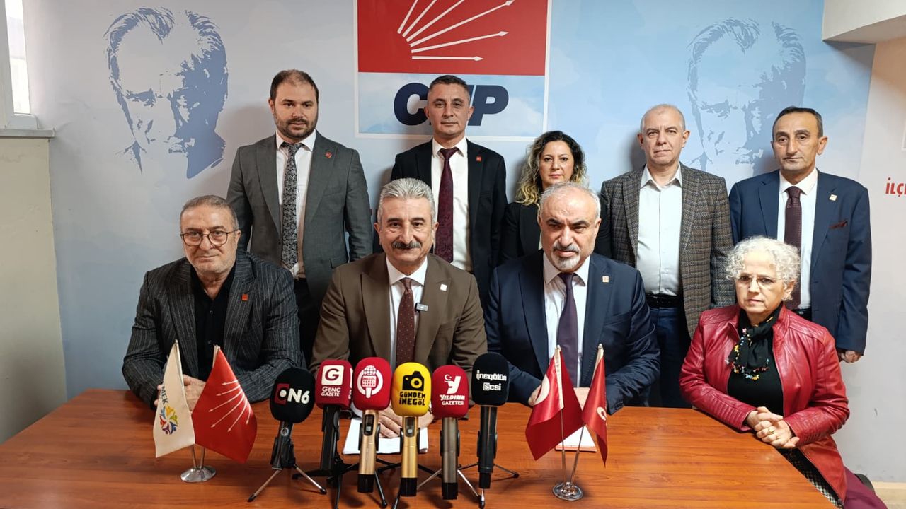 CHP İnegöl İlçe Başkanlığında basın toplantısı düzenleyen CHP Bursa İl Başkanı Nihat Yeşiltaş’a, CHP İnegöl İlçe Başkanı Zemci Şahin, meclis üyeleri, yönetim kurulu ve parti üyeleri eşlik etti.