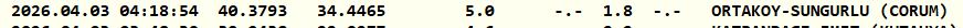 Kandilli Rasathanesi Çorum'un Sungurlu ilçesinde meydana gelen depremin büyüklüğü 1.8 olarak açıkladı. Saat 04.18'de gerçekleşen depremin derinliği 5.0 kilometre ölçüldü.