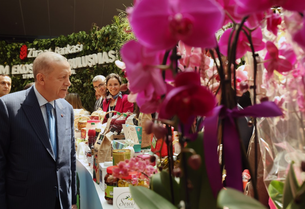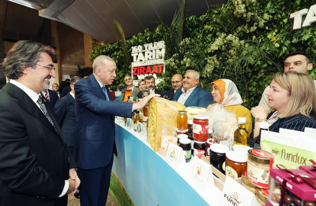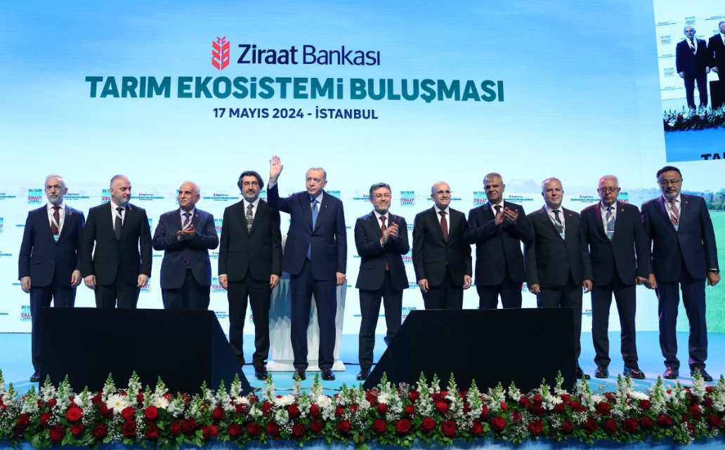 Cumhurbaşkanı Recep Tayyip Erdoğan, Haliç Kongre Merkezi’nde "Sürdürülebilir Tarım ve Tarımda Markalaşma" temasıyla düzenlenen Ziraat Bankası Tarım Ekosistemi Buluşması’na katıldı. Burada yaptığı konuşmada 1863 yılından beri Ziraat Bankası’nın Türk tarımının lokomotifi olduğunu söyleyen Cumhurbaşkanı Erdoğan "Savaş dönemleri dahil ülkemizin yokluk günlerinde bankamız çiftçinin, esnafın, tüccarın, girişimcinin yanında yer aldı. Üreticilerimizin insanımızın iliğini sömüren tefecilerin ve faiz lobilerinin pençesine düşmemesi noktasında hayati rol üstlendi. Ziraat Bankası dün olduğu gibi bugün de ülkeyi ve milleti önceleyen duruşunu muhafaza ediyor. Şunu bir kez daha hatırlatmak isterim, Ziraat Bankası sadece kar peşinde koşan bir banka değildir. Bunun yanı sıra Ziraat, ihtiyaç duydukları anda çiftçinin, esnafın, sanayici, tüccar ve ihracatçının elinden tutan bir kara gün dostudur. Her iktisadi teşekkül çalışmalarını sürdürmeyi, yeni yatırımlarla faaliyet sahasını büyütmeyi ve genişletmeyi hedefler. Ziraat Bankamızın da hem ülke içinde hem de yurt dışında mevcudiyetini artırdığını görmekten artık memnuniyet duyuyorum. 2015 yılında Ziraat Katılım’ın faaliyete geçmesiyle birlikte bankamız hızla gelişen alternatif finans piyasasında da yerini almıştır. Biraz evvel genç ve kadın çiftçilerimiz ile kooperatif ürünlerinin yer aldığı stant alanını ziyaret ettik. Ülkemiz tarımının çeşitliliğine ve zenginliğine burada tekrar şahit olduk. Bu hazineyi ne kadar ileriye taşırsak Türkiye için o kadar iyi olacaktır. Tabii bunun için tarım sektörünün tüm paydaşlarının el ele vermesi, iş birliği ve dayanışması içinde hareket etmesi mühimdir. Tarım sektörünün bütün aktörlerini aynı zamanda buluşturan bu tarz programlar anlayış birliğinin tesisini de kolaylaştırmaktadır" dedi.