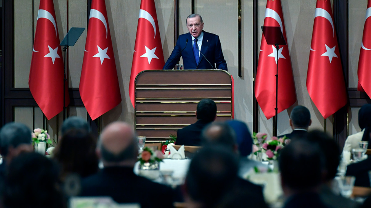 Mevcut uluslararası kurumların büyük bölümünün işlevsiz hale geldiğini söyleyen Erdoğan, Türkiye’nin hem kendi hak ve çıkarlarını savunabilmesi hem de dost ve kardeşlerine yardım edebilmesi için ekonomik, askerî ve diplomatik bakımdan güçlü olmak zorunda olduğunu vurguladı. Erdoğan, "Resmin bütününe baktığımızda karşılaştığımız manzara şudur: Uluslararası kurumların çoğu bugün, kendisini gassalın ellerine bırakmış meyyit misali cansız, duyarsız, hareketsiz ve işlevsiz vaziyettedir. Türkiye’nin hem kendi hak ve çıkarlarını layıkıyla savunabilmesi hem de dost, soydaş ve kardeşlerine yardım eli uzatabilmesi için ekonomik, askerî, diplomatik bakımdan güçlü olmak dışında bir seçeneği yoktur" açıklamasını yaptı.