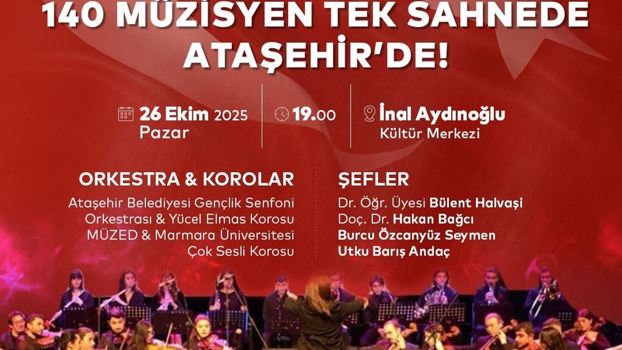 Ataşehir Belediyesi Gençlik Senfoni Orkestrası (ABGSO), 2025-2026 konser sezonunu Cumhuriyetin 102. yılına yakışan görkemli bir açılış konseriyle başlatıyor. 26 Ekim Pazar akşamı saat 19.00’da İnal Aydınoğlu Kültür Merkezi’nde gerçekleşecek olan konser, 140 müzisyeni aynı sahnede buluşturacak. Ataşehir Belediyesi Gençlik Senfoni Orkestrası’nın Cumhuriyet Bayramı konseri, Meksikalı besteci Arturo Marquez’in tüm dünyada büyük orkestraların repertuvarında yer alan "Danzon No.2" eseriyle başlayacak. Programın devamında ise Gençlik Senfoni Orkestrası’na Yücel Elmas Korosu MÜZED ve Marmara Üniversitesi Çoksesli Korosu eşlik edecek. Konser repertuvarında Mozart’ın Requiem’inden seçmelerin yanı sıra Sakarya, Harbiye, Vatan, 100. Yıl ve İzmir Marşı gibi milli marşlar da yer alacak. Bu özel konserde orkestra şeflerinin yanı sıra genç müzisyenler de ilk kez şef kürsüsünde yer alma deneyimi yaşayacak. Şefliğini Dr. Öğr. Üyesi Bülent Halvaşi, Doç. Dr. Hakan Bağcı, Burcu Özcanyüz Seymen ve Utku Barış Andaç’ın üstleneceği konser, Ataşehir Belediyesi Gençlik Senfoni Orkestrası’nın sanat dolu yolculuğunda yeni bir dönemi müjdeleyecek.