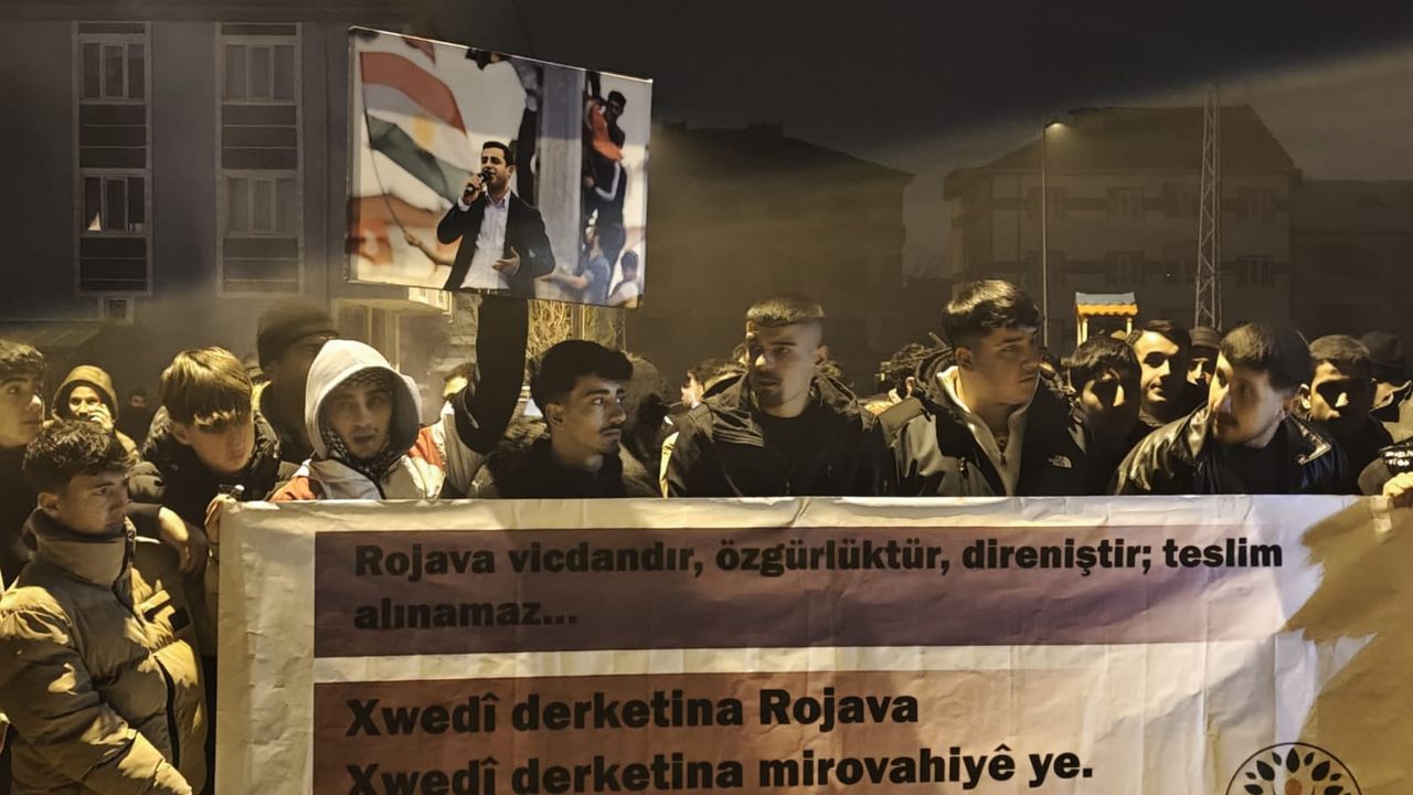 Eyleme dönüşen basın toplantısında sık sık sloganlar da atıldı. Pankart açılan gösteri de düzenlenen basın toplantısında DEM Parti üyesi şu şekilde konuştu; “Rojava’nın kazanımlarını korumakta kararlıyız. Özerk yönetimin, ortak yaşam iradesinin yanındayız. Kürt halkı bu tür saldırılara karşı örgütlü, ulusal ve demokratik birlik ruhuyla direniş hakkını temel alarak duracaktır. Hiçbir güç halkımızı temsil almayı başaramamıştır, başaramayacaktır. Uluslararası güçleri, birleşmiş milletleri ve ilgili tüm aktörleri artık izleyici konumundan çıkmaya çağırıyoruz. Sivillerin korunması için derhal sorumluluk alınmalı, saldırılar acilen durdurulmalı. Sessizlik bu suça ortak olmaktır. Kürt halkını yalnız bırakmayın.”