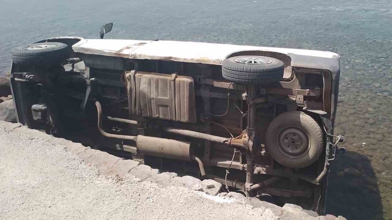Yaralı sürücünün hayati tehlikesinin bulunmadığı öğrenilirken, devrilen araç ise vinç yardımıyla karaya çekildi.