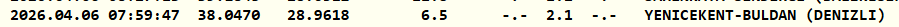 Denizli'nin Buldan ilçesinde 2.1 büyüklüğünde deprem meydana geldi. Kandilli Rasathanesi depremin yerin 6.5 kilometre derinliğinde gerçekleştiğini belirtti.