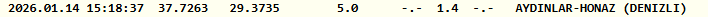 Honaz merkezli deprem saat 15.18'de 1.4 büyüklüğünde gerçekleşti. Kandilli depremin derinliğini 5 kilometre olarak açıkladı.