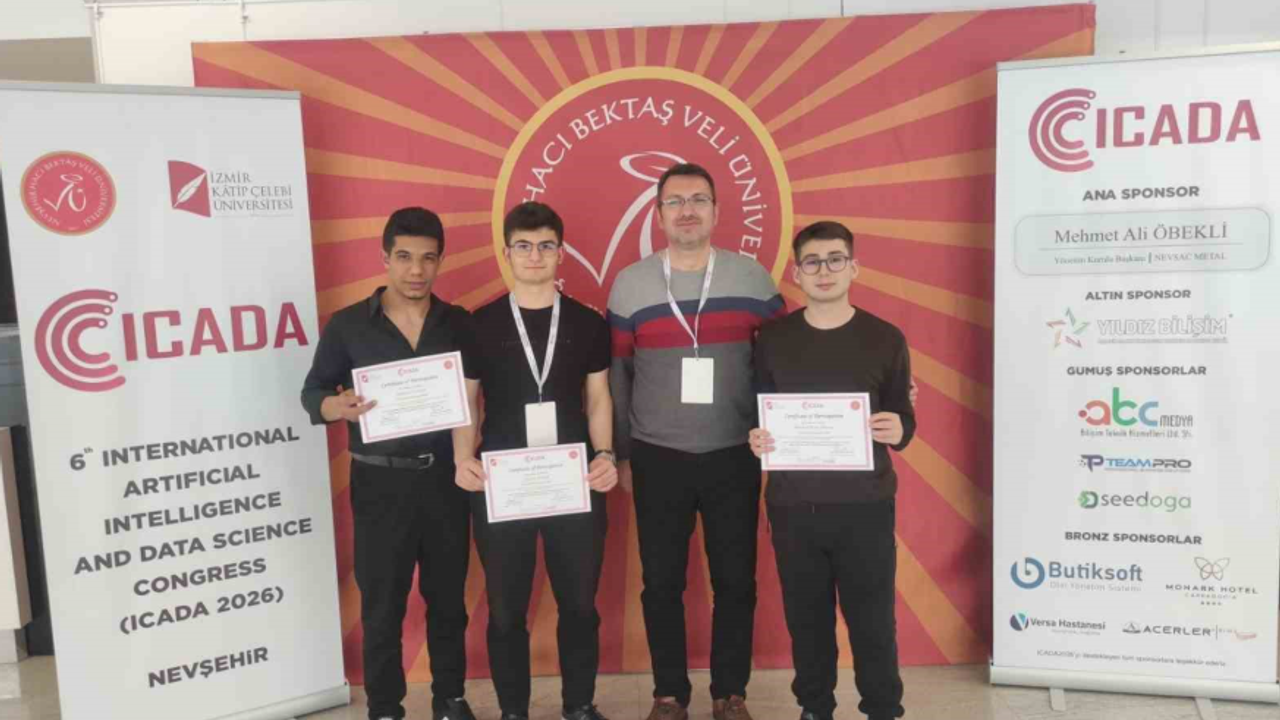 Makaleleri hakem heyeti tarafından kabul edilen öğrenciler Nevşehir Hacı Bektaş Veli Üniversitesi’nde düzenlenen ICADA 2026 Uluslararası Yapay Zekâ Kongresinde, salondaki kongre heyeti ve katılımcıların yanı sıra çevrim içi bağlantıyla kongreye katılan katılımcılara da makalelerini başarılı bir şekilde sundular.
