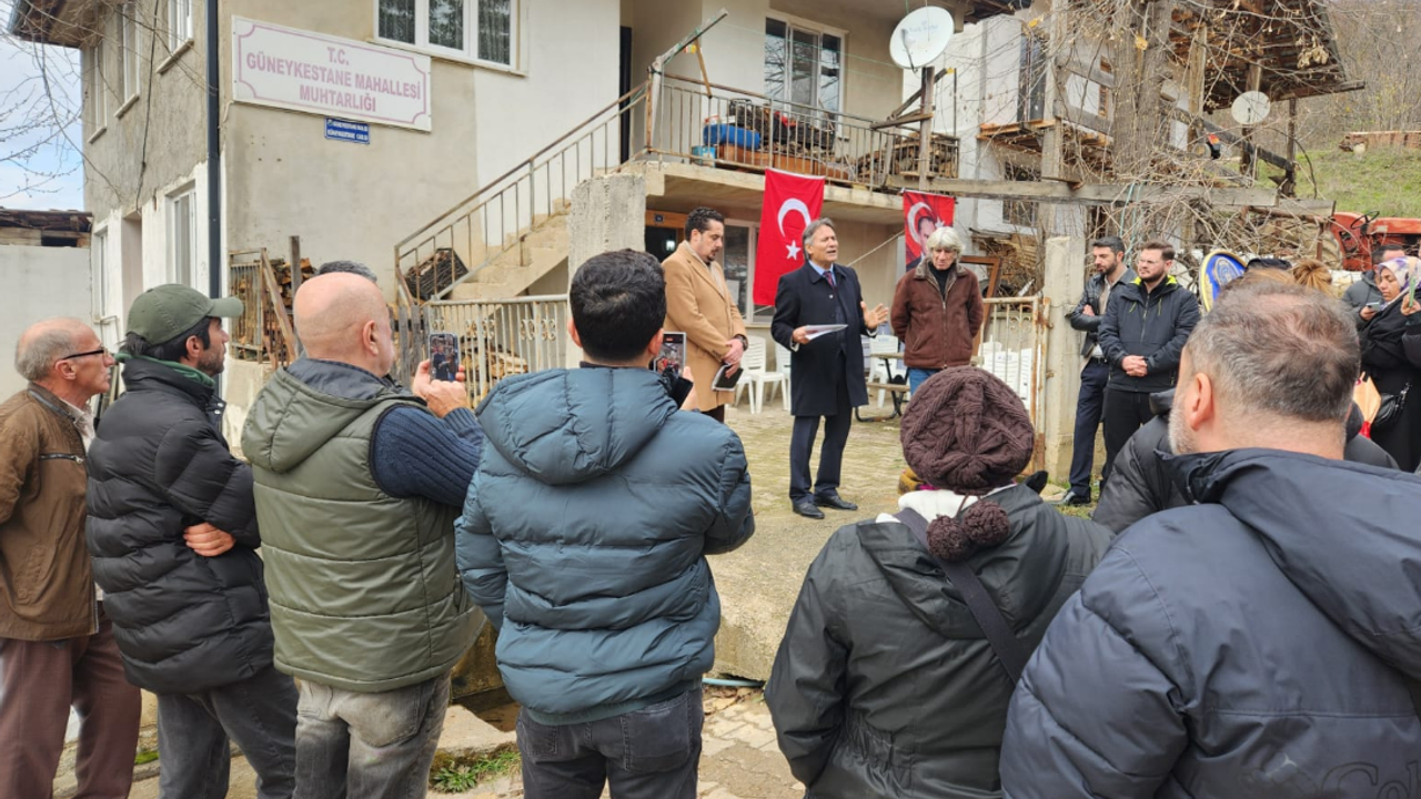 İnegöl’e bağlı kırsal Güneykestane, Gedikpınar ve Mezit mahallelerine yakın bir bölgede Kavak Madencilik tarafından yürütülen altın arama çalışmaları kapsamında sondajlar başlatıldı. Bu çalışmalara karşı tepkilerini göstermek için İnegöl'e bağlı Güneykestane mahallesinde bir araya gelen STK temsilcileri ve yetkililer arasında CHP Bursa Milletvekili Orhan Sarıbal, Yönetmen Ezel Akay, Bursa Kent Konseyi Başkanı Prof. Dr. Ertuğrul Aksoy, Bursa Doğader Başkanı Murat Demir, Bozcaarmut Köyü Kültür ve Çevre Derneği Başkanı Murat Aydın, Bilecik Mimarlar Odası Başkanı Hasan Furkan Burulday, Bilecik TİP İl Başkanı Orhan Çağrı Biçen, İnegöl Doğader Temsilcisi Barış Kama ve mahalle sakinleri yer aldı.