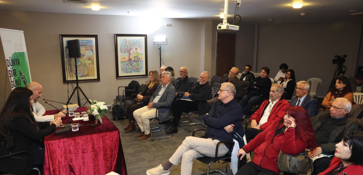 Nazım Hikmet Kültür Evi’nde şiirseverlerin yoğun katılımıyla gerçekleştirilen Dünya Şiir Günü etkinliğinde sanatın dünyayı iyileştirici gücü ve şiirin evrensel dili üzerine paylaşımlarda bulunuldu.