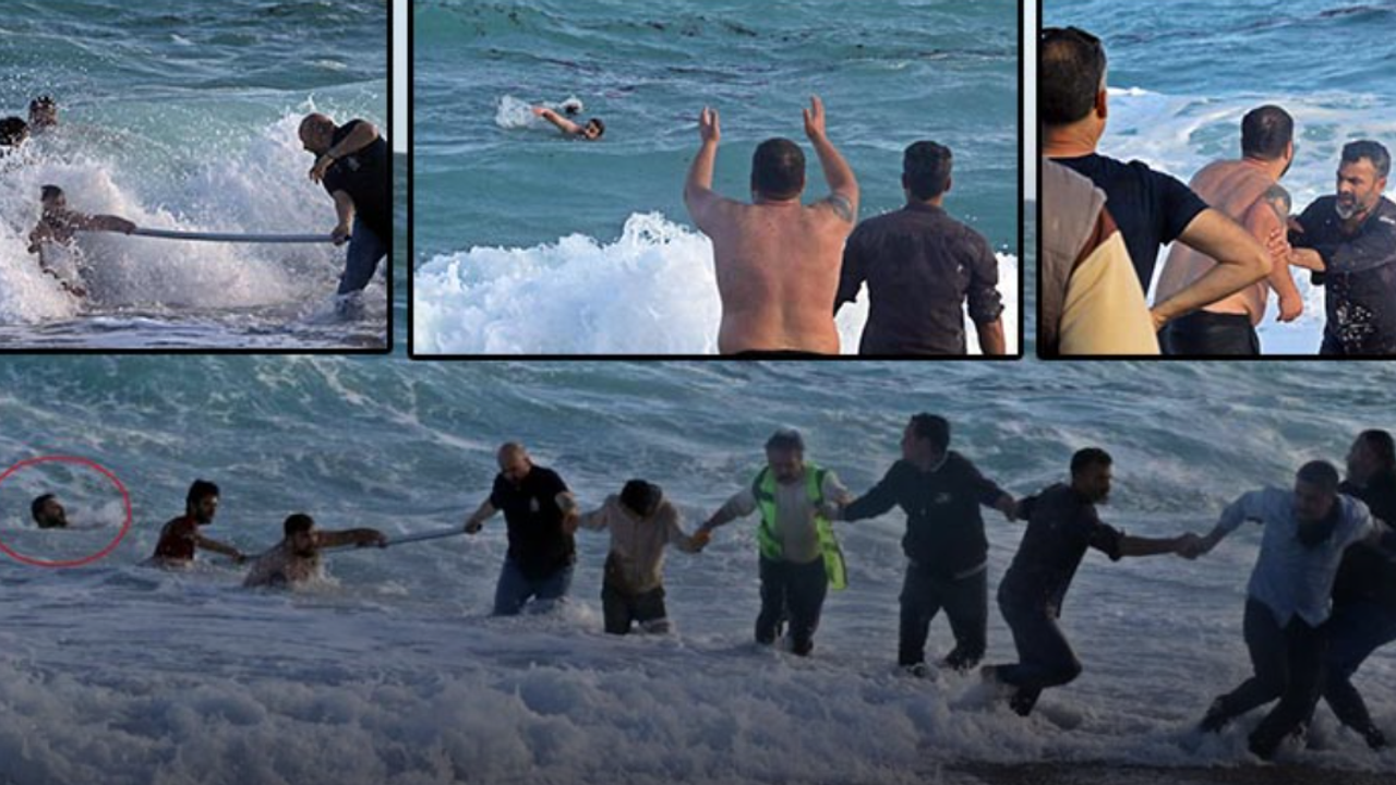 Karaya kendi imkanlarıyla çıkan küçük kardeş, ağabeyini çevredeki vatandaşların oluşturduğu insan zinciriyle kurtardı. Denizde can pazarının yaşandığı o anlar kameralara anbean yansıdı.