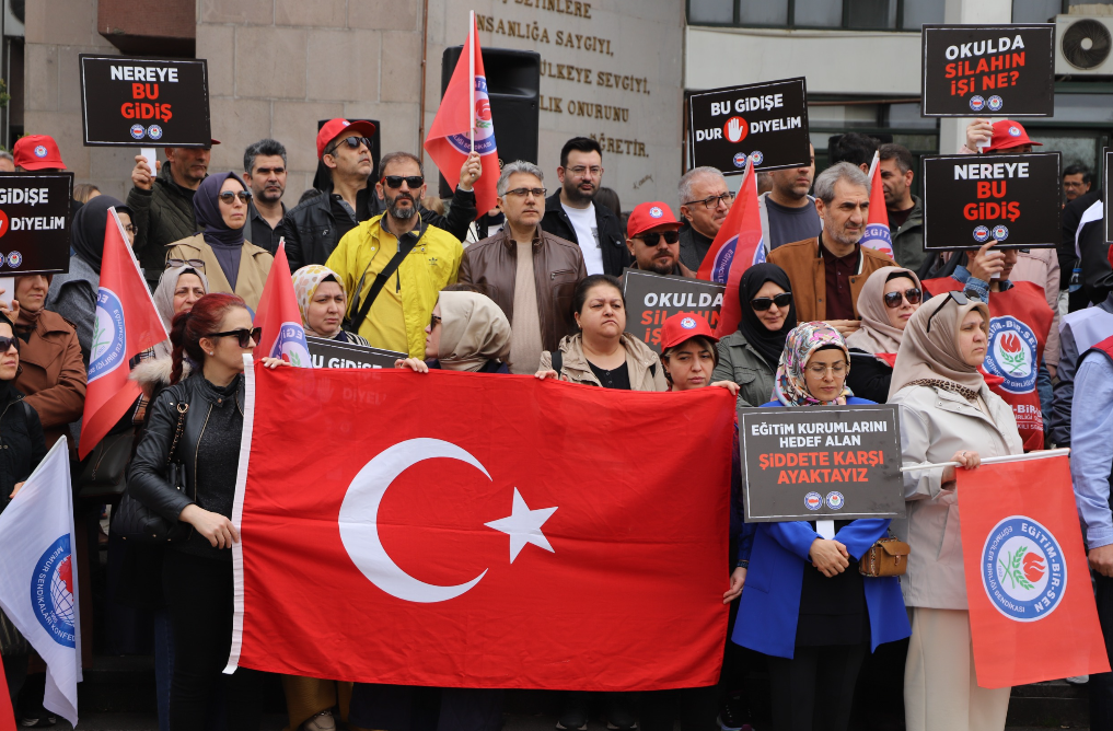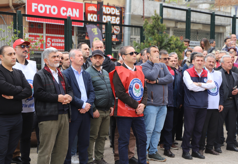 Memur-Sen Bursa İl Temsilcisi ve Eğitim-Bir-Sen Bursa 1 No’lu Şube Başkanı Ramazan Acar, Siverek Ahmet Koyuncu Mesleki ve Teknik Anadolu Lisesi’nde yaşanan saldırıya ilişkin Bursa İl Milli Eğitim Müdürlüğü önünde gerçekleştirdiği açıklamasında, eğitim kurumlarında artan şiddet olaylarına dikkat çekti.
