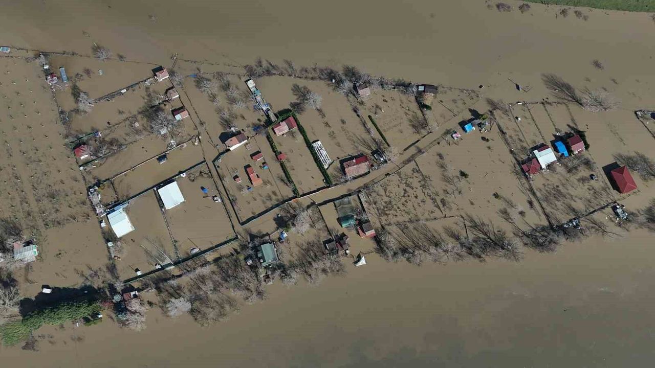 Edirne'de etkili olan yağışlar ve Bulgaristan'daki barajlardan bırakılan sular nedeniyle Meriç Nehri'nde yaşanan taşkın sonrası sular altında kalan yerleşim yerleri havadan görüntülendi.