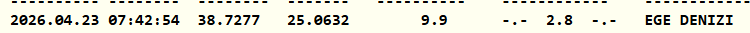 Kandilli Rasathanesi, Ege Denizi'nde saat 07.42'de 2.8 büyüklüğünde deprem meydana geldiğini duyurdu. Depremin derinliği 9.9 kilometre olarak açıklandı.