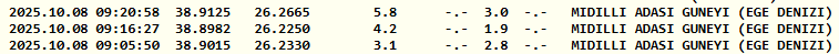 Depremin ardından Kandili Rasathanesi verileri paylaştı. Buna göre ilk deprem saat 09.05'te 2.8 büyüklüğünde gerçekleşti. İkinci deprem 09.16'da 1.9 büyüklüğünde gerçekleşirken son deprem ise 09.20'de 3.0 büyüklüğünde kaydedildi. Kandilli bu depremlerin derinliğini sırasıyla 3.1, 4.2, 5.8 kilometre olarak açıkladı.