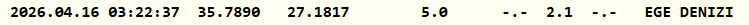 Ege Denizi'nde saat 03.22'de 2.1 büyüklüğünde deprem meydana geldi. Kandilli, depremin derinliğini 5.0 kilometre olarak açıkladı.