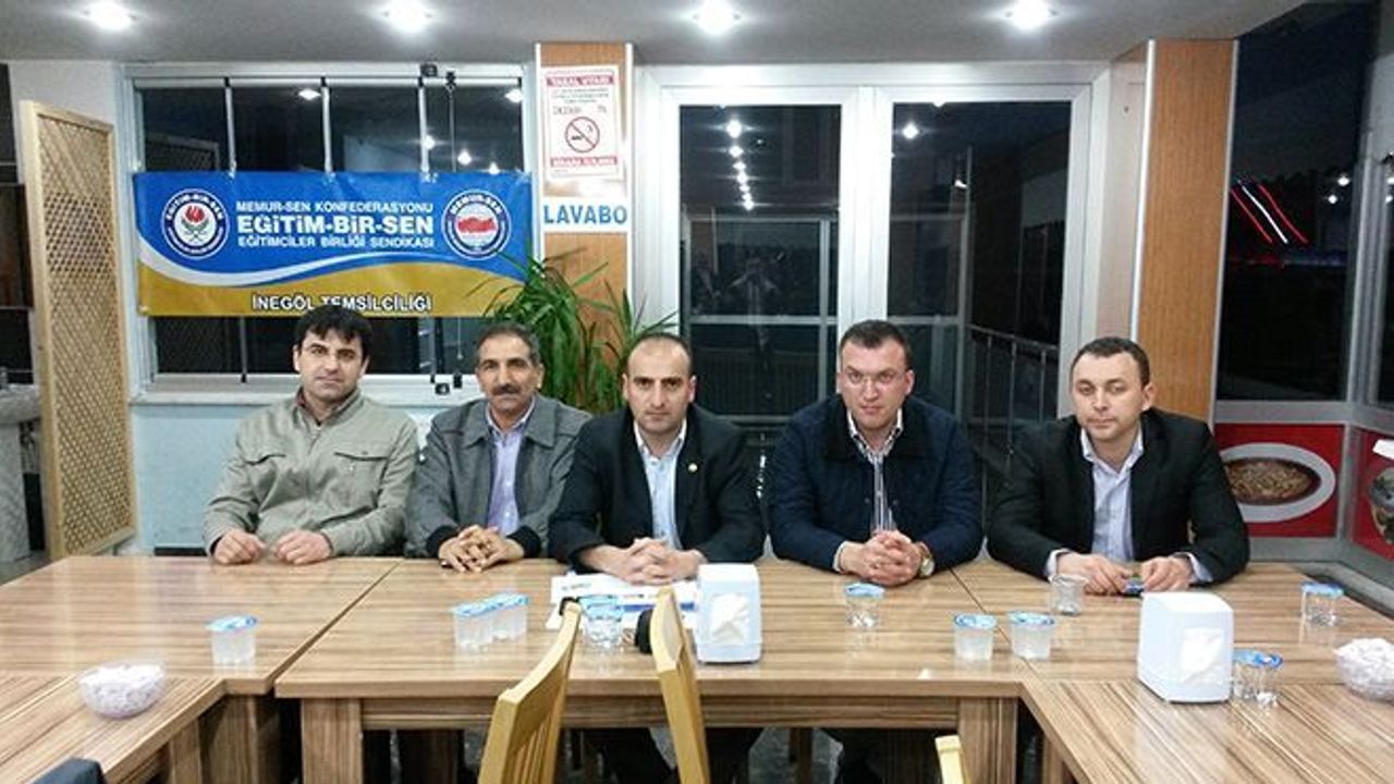 30 Nisan 2014 Çarşamba günü saat 19.30 da, Alanyurt yolu üzerinde bulunan Erbay Balıkçılık Restoranda yapılan iş yeri temsilcileri toplantısına, Eğitim Bir-Sen İnegöl İlçe Başkanı Sinan Aktaş, Başkan Yardımcıları Serdar Yücel ve Özkan Arslan, Şube Müdürü olarak atamaları yapılan İbrahim Çelebi, Yakup Balantekin ve Ali Rıza Atlı ile iş yeri temsilcileri katıldı.